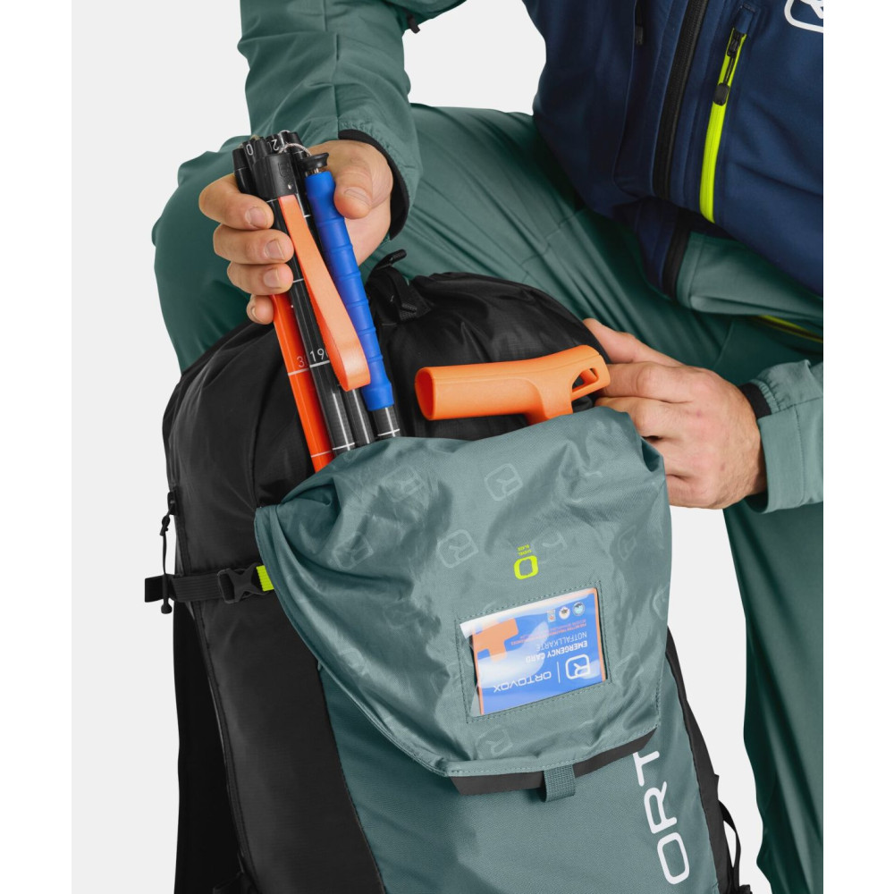 Připevnění a odepnutí lyží či uložení maček bez nutnosti skládání batohu ze zad z něj dělá ideálního společníka když chcete během výšlapu ušetřit cenné vteřiny. Ergonomický zádový systém FULL CONTACT LIGHT BACK pohodlně sedí na zádech a lze do něj vložit certifikovaný chránič páteře Clasp Spine Protector. Do hlavní komory se dostanete dvěma způsoby: buď přes hlavní víko ze shora, nebo bočním zipem. Na spodku je samostatná přihrádka na mačky nebo stoupací pásy.