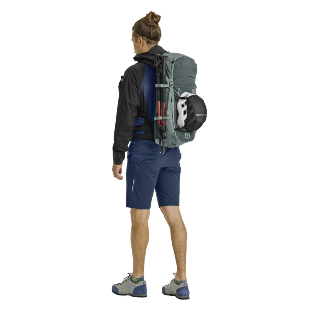 Batoh TRAVERSE 30 L od značky ORTOVOX je navržen pro náročné alpské túry a splňuje všechny požadavky na funkčnost a odolnost. Vnější materiál je vysoce odolný a tvoří ho ze 75 % recyklovaný polyamid.