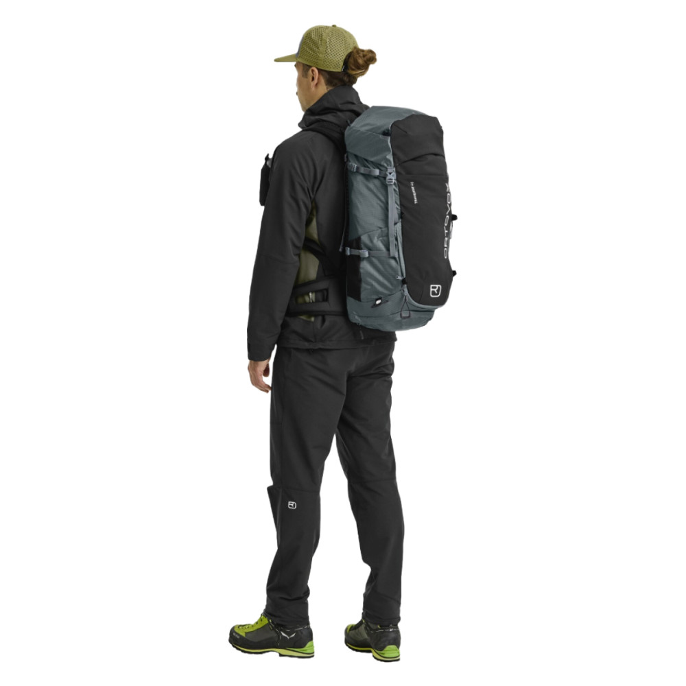 TRAVERSE 40 L od značky ORTOVOX je všestranný batoh navržený veškeré horské terény. Vnější materiál je vyroben z 75 % z recyklovaného polyamidu, což zajišťuje vysokou odolnost vůči opotřebení.