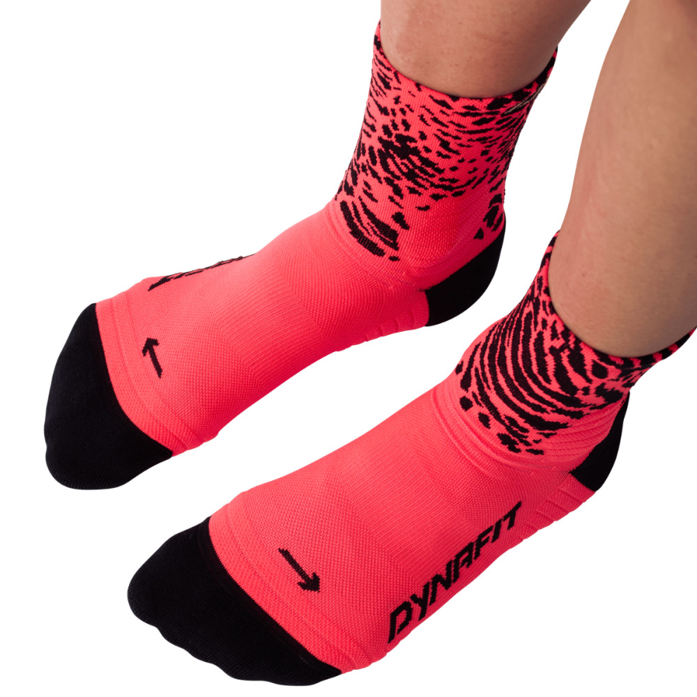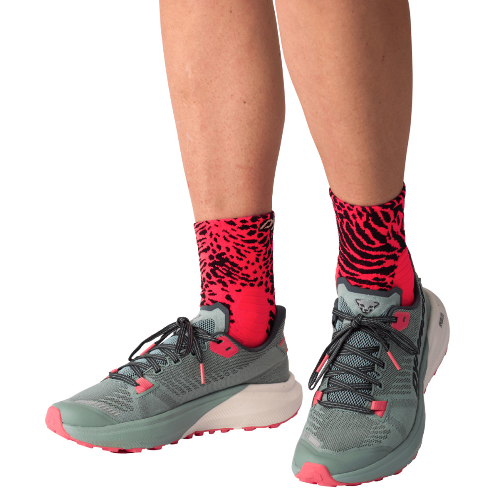 Běžecké ponožky Dynafit RUN WILD MID jsou určeny pro trail running, trénink a dynamický pohyb v terénu. Lehká konstrukce s nylonovou směsí podporuje odolnost při častém používání, zatímco materiál efektivně odvádí vlhkost a pomáhá udržet suché klima chodidla. Vyvážené tlumení poskytuje ochranu při dopadu bez zbytečného objemu v botě. Strategicky umístěné mesh zóny zvyšují prodyšnost v zatěžovaných oblastech.