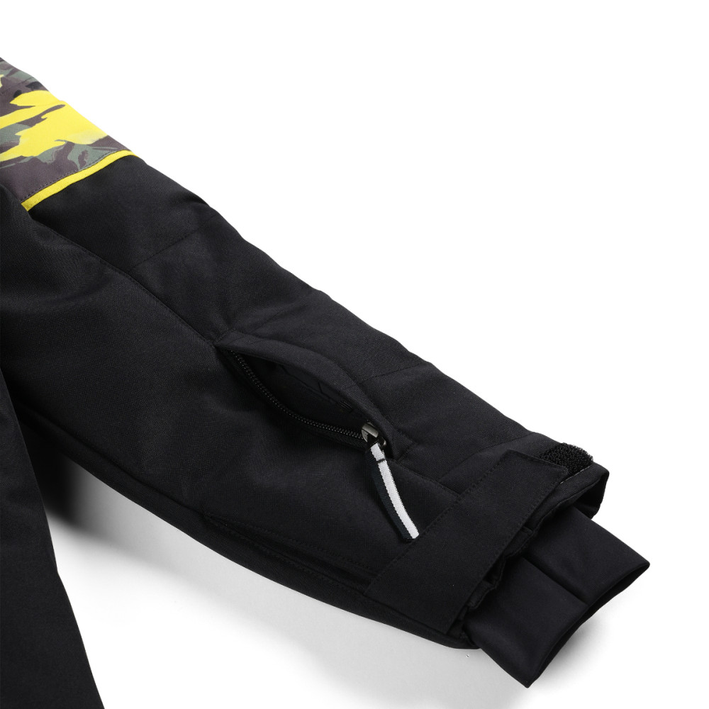 Je vybavena odnímatelnou kapucí s manžetou a pevným sněhovým pásem s patentkami a gumou pro lepší uchycení. Nastavitelná poutka na manžetách rukávů s dírou na palec se postarají, aby se do rukávů lehce nedostal sníh a chlad. Do kapsy na rukávu navíc pohodlně schovají skipas a během dne ho tak neztratí.