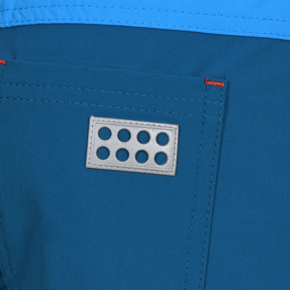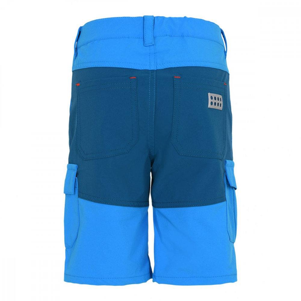 Kraťasy, které se budou hodit na každé letní dobrodružství. Kraťasy jsou v královsky modré barvě a jsou ve stylu kapsáčů. Na vnitřní straně v pase je gumička s knoflíkem, na možné stáhnutí. Kraťasy jsou z tenkého a robustního materiálu, který je velmi příjemný na dotek. V pase jsou poutka na možný pásek. Zapínání je na zip a knoflík. Na zadní straně je reflexní nášivka lego kostičky.