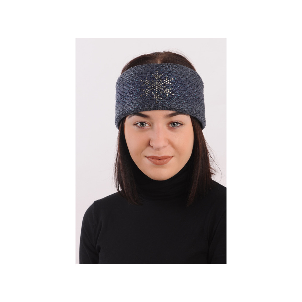 Máte rádi čelenky? Tak to vám tato dámská pletená čelenka udělá rozhodně radost! Na první pohled vás zaujme třpytivé prošití lurexem. Z přední části jsou kamínky Swarovski ve tvaru vločky. Čelenka je zateplená fleecem.