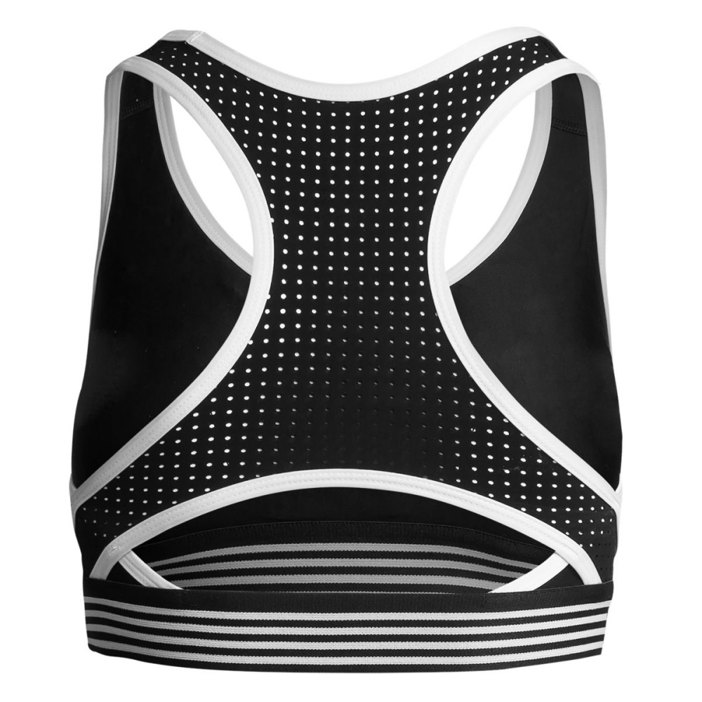 Funkční podprsenka, která se stane součástí každého sportovního kompletu. Spodní lemování je z pruhované elastické gumy, která se krásně přizpůsobí. Podprsenka je z vysoce elastického materiálu, který je prodyšný a rychleschnoucí. Na zadní straně je perforovaný materiál, který napomáhá k lepší cirkulaci vzduchu. Uvnitř podprsenky jsou všité vycpávky.