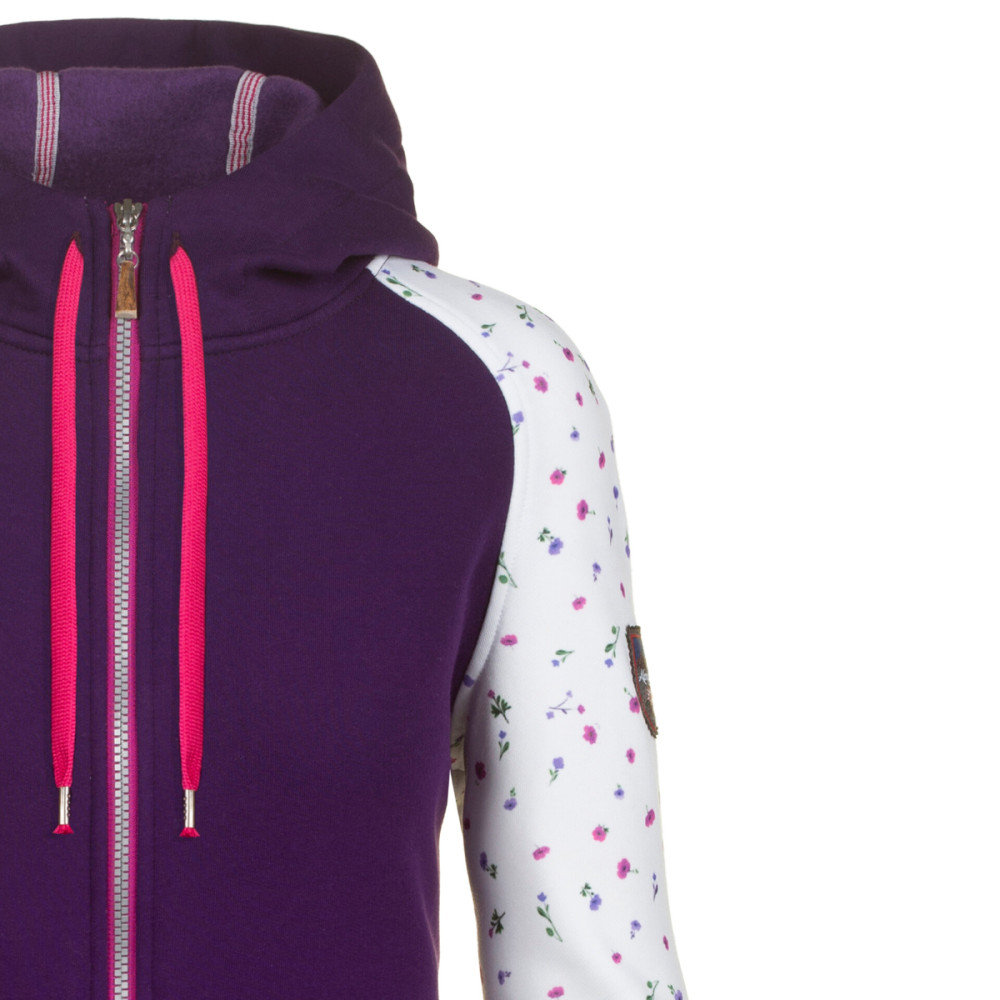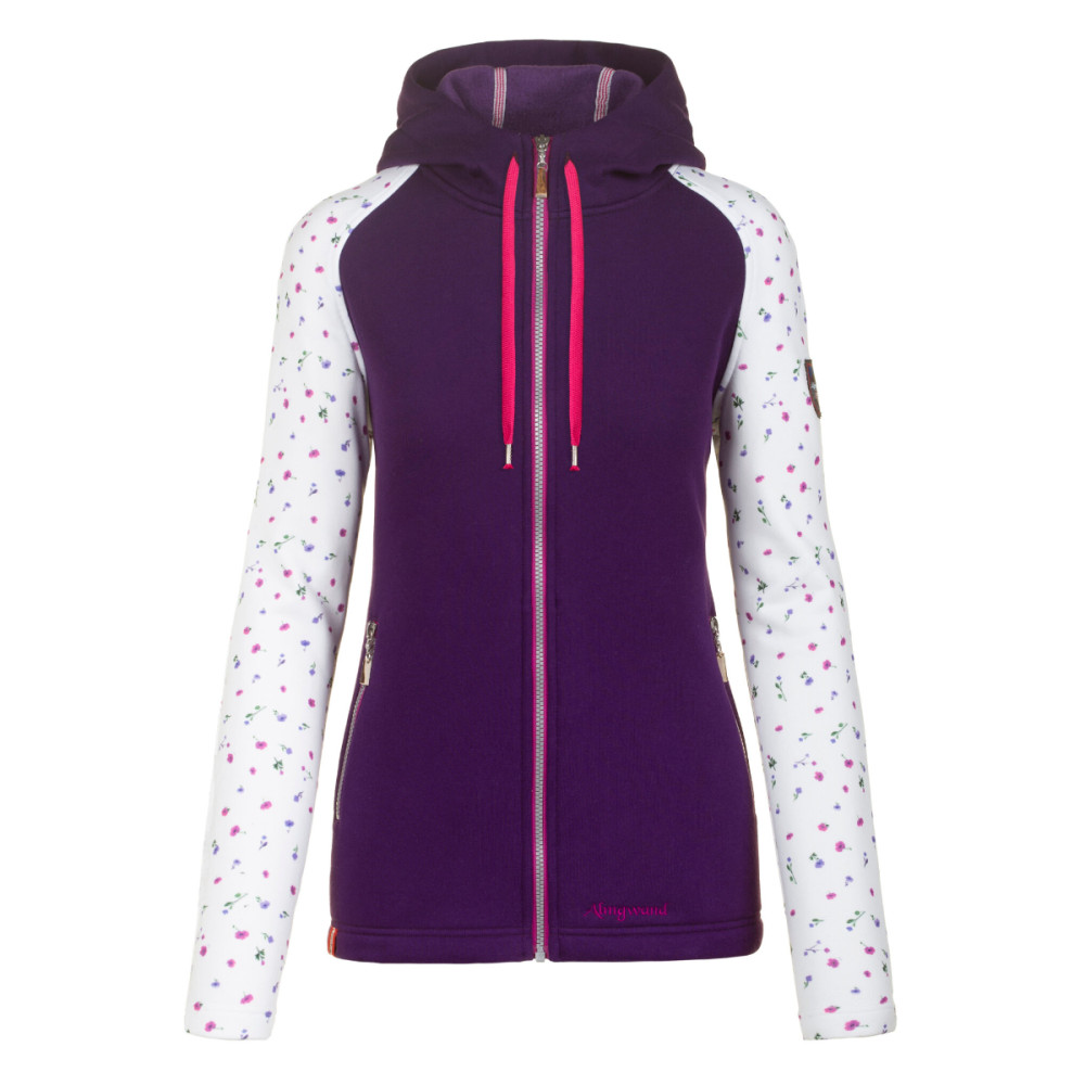 Dámská mikina Almgwand Plomberg s kapucí vyniká květinovým vzorem na rukávech. Přední zip i obě kapsy jsou opatřeny originálními přívěsky z pravého jeleního parohu. Kapuci lze díky šňůrce snadno upravit podle potřeby.