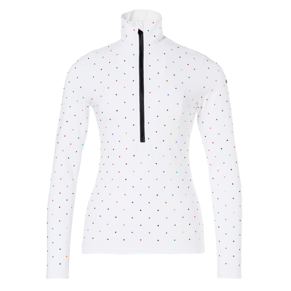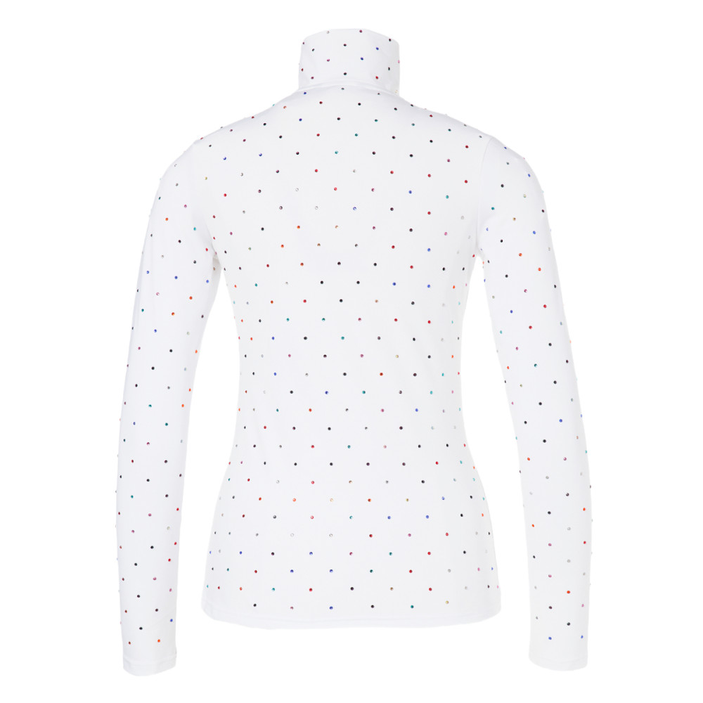 Mikina je vyrobena z vysoce kvalitního, přiléhavého materiálu, který je nejen prodyšný, ale také rychleschnoucí. To znamená, že se můžete cítit pohodlně a sebejistě po celý den. Celkový vzhled je doplněn nádhernými pestrobarevnými kamínky po celé délce, které dodávají mikině jedinečný a luxusní vzhled.