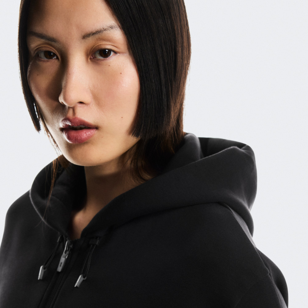 Mikina je vybavena dvěma kapsami na zip, které bezpečně uloží telefon, klíče, nebo další drobnosti. Dvojitě podšitá kapuce s možností stažení zvyšuje komfort a dodává prémiový vzhled. Minimalistický design s decentními brandovými prvky podtrhuje univerzální využití, od zahřátí před tréninkem, přes cestování až po volnočasové nošení.