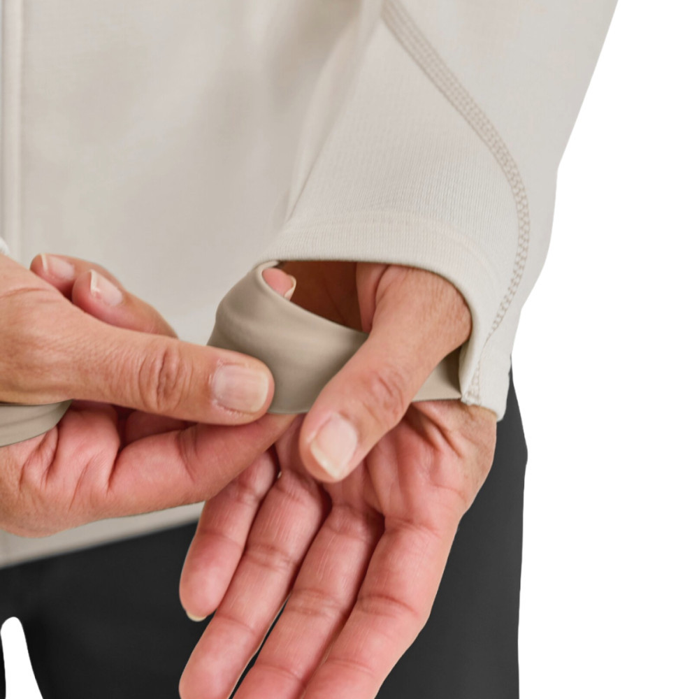 Je dokonalým společníkem pro každé vaše dobrodružství, ať už se vydáte na prosluněné hřebeny, zdoláváte výzvy skalních stěn nebo si užíváte zasloužený odpočinek u táboráku. Díky použití jemné tasmánské merino vlny, která se dotýká vaší pokožky, nabízí mikina nepřekonatelnou prodyšnost a optimalizuje regulaci teploty vašeho těla i při nejintenzivnějších aktivitách. Vysoce elastická struktura materiálu MERINO FLEECE LIGHT se přizpůsobí každému vašemu pohybu, poskytne svobodu a neomezí vás ani při neočekávaných škobrtnutích. Ať už se chystáte na výšlap v chladnějším počasí nebo se jen potřebujete schovat před průvanem, přiléhavá kapuce a poutka na palce poskytují dodatečnou ochranu a teplo. Kromě toho dvě přední kapsy nabízejí praktický úložný prostor pro vše, co potřebujete mít po ruce – ať už je to mobilní telefon či jiné drobnosti.