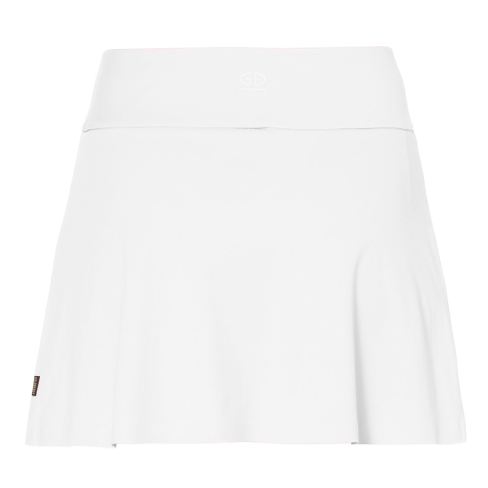 Dámská sukně, kterou si zamilujete během letních dnů. Na první pohled vás zaujme svým sportovně elegantním designem a uvnitř vás překvapí uplé elastické kraťásky. Sukni tak využijete nejen na volný čas, ale také na sportovní aktivity. Na přední straně je rozparek, pod kterým se nachází decentní zlatý nápis Goldbergh. Sukně má vyšší pas a díky elastickému materiálu se krásně přizpůsobí postavě. Na bedrech je malé zlaté logo značky.