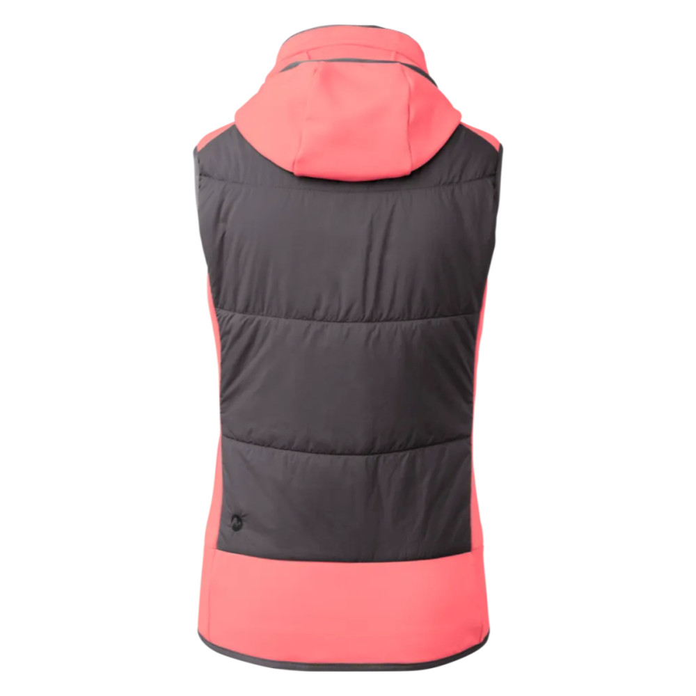 Tato hybridní vesta je vybavena dvoucestným předním zipem, dvěma kapsami na ruce a náprsní kapsou a přiléhavou kapucí pro dodatečnou ochranu. Elastické lemování na kapuci, průramcích a lemu zajišťuje optimální přiléhavost. DWR úprava činí vnější materiál vodoodpudivým, což je ideální při proměnlivém počasí.