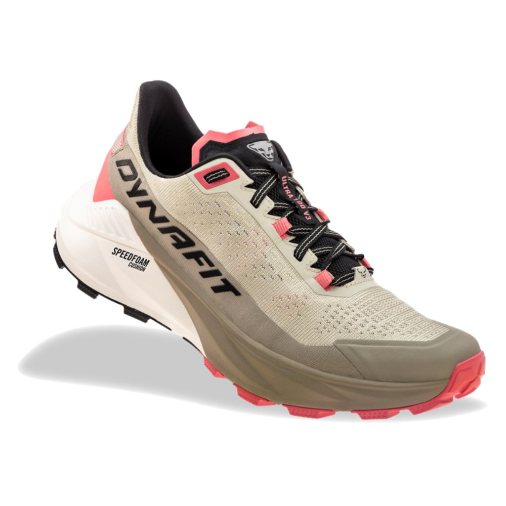 Dynafit ULTRA 100 V3 jsou dámské trailové běžecké boty navržené pro ultradlouhé běhy a technický terén. Mezipodešev SPEEDFOAM Cushion ze superkritické pěny nabízí vysokou úroveň tlumení nárazů a zároveň efektivní návrat energie při odrazu. Konstrukce mezipodešve obsahuje stabilizační prvky, které zvyšují kontrolu a jistotu při běhu v náročném terénu.