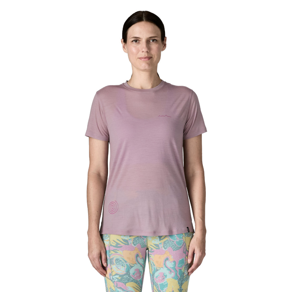 Patagonia CAPILENE COOL MERINO BLEND GRAPHIC SHIRT je dámské funkční tričko z prodyšné směsi merino vlny a recyklovaného polyesteru, navržené pro široké spektrum aktivit. Materiál kombinuje Responsible Wool Standard (RWS) certifikovanou merino vlnu s 35 % recyklovaného polyesteru pro lepší odvod vlhkosti, rychlé schnutí a vyšší odolnost. Tkanina je měkká na dotek, přirozeně reguluje teplotu a pomáhá omezovat vznik zápachu.