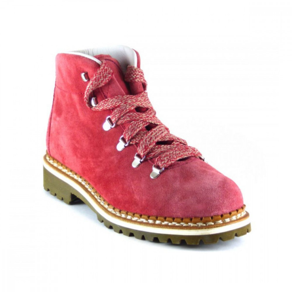 Krásné designové kožené farmářky, které okouzlí každou ženu. Kombinace červené semišové boty, žíhané tkaničky s hnědou podrážkou vytváří dojem originality. Na jazyku vyšité písmena VS. Zavazování na tkaničky doplňují stříbrné detaily. Díky masivní podrážce se boty hodí jak do hor, tak i do města.