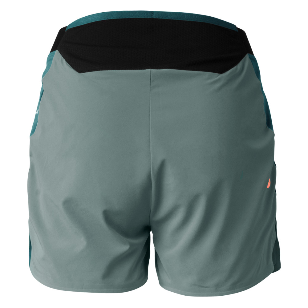 Krátký střih podporuje volnost pohybu a snižuje hmotnost při aktivitě. Elastický pas se silikonem na vnitřní straně zajišťuje stabilní usazení bez posouvání. Praktickým detailem je zadní mesh kapsa, která umožňuje rychlé uložení drobností během pohybu.