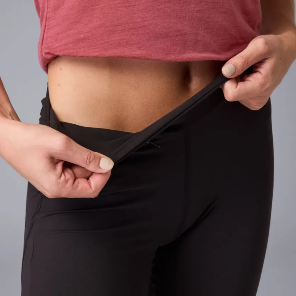 Dvojitý vysoký pas zajišťuje pohodlné nošení bez nepříjemného zařezávání a malá kapsa na zip bezpečně pojme klíče nebo drobnosti, které potřebujete mít u sebe. Reflexní loga na přední i zadní straně zvyšují vaši viditelnost za šera i ve tmě. Legíny jsou vyrobeny v Rakousku s důrazem na kvalitu a funkčnost.
