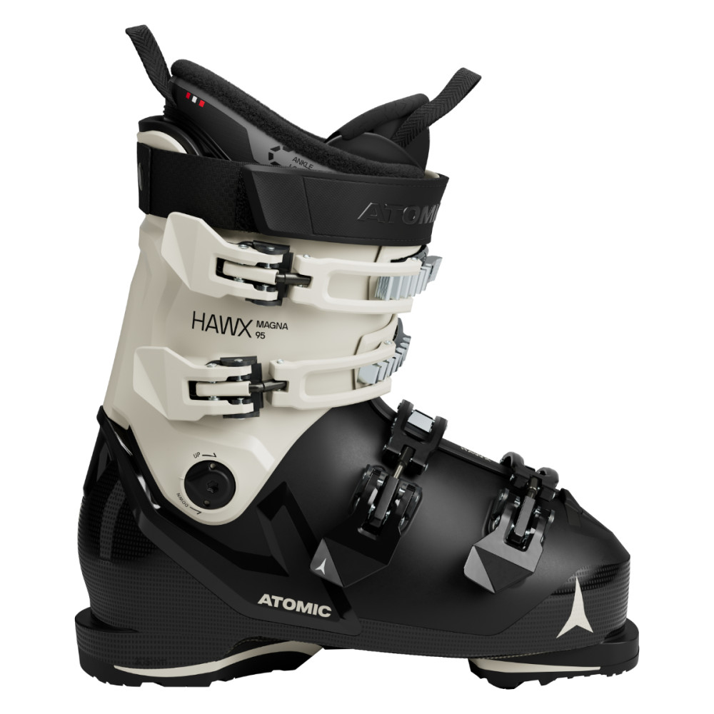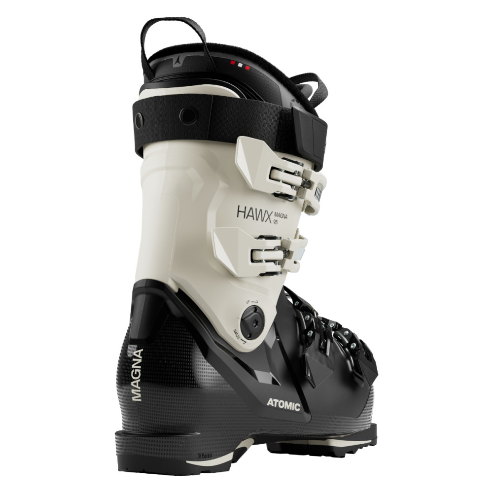 Přední část 3D Stretch Toe Box s elastickým zakončením zvyšuje komfort v oblasti prstů a palce, zatímco technologie Memory Fit umožňuje tepelně vytvarovat skelet i komín podle vašeho chodidla během několika minut. Dámský komín má nižší výšku a větší obvod, aby respektoval tvar ženských lýtek, a pomocí odnímatelného AFS spoileru lze prostor ještě zvětšit. Atomic Hawx Magna 95 W jsou tak ideální boty pro ženy, které chtějí spolehlivého parťáka pro každý terén – výkonné, pohodlné a přizpůsobivé.