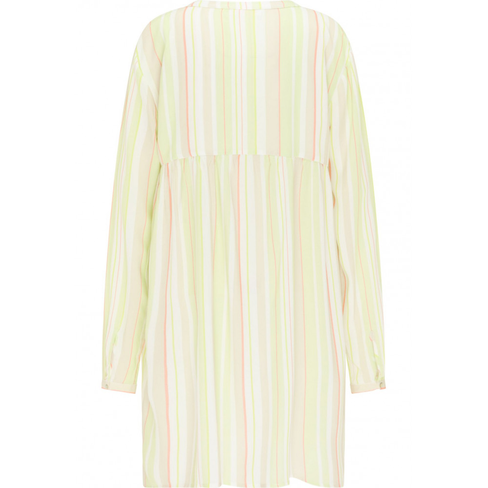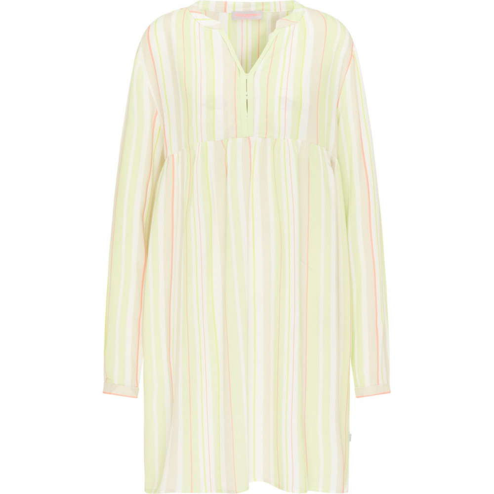 Užijte si horké letní dny s šaty od značky Frieda & Freddies. Šaty jsou v originálním pruhovaném provedení v zeleno-bílo-béžovo-oranžové barevné kombinaci. Výstřih se dá rozepnout pomocí knoflíku, které jsou schované na vnitřní straně. Šaty jsou z lehkého a vzdušného materiálu. Rukávy mají zapínání na knoflík.