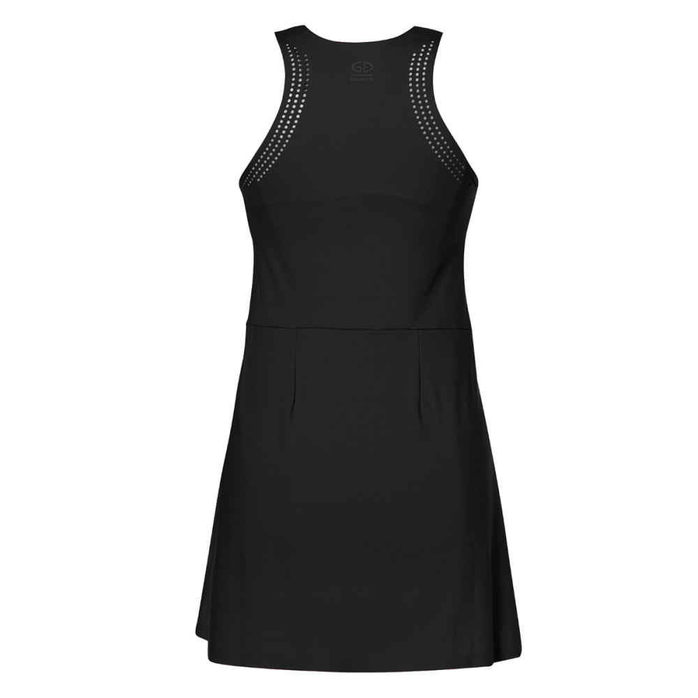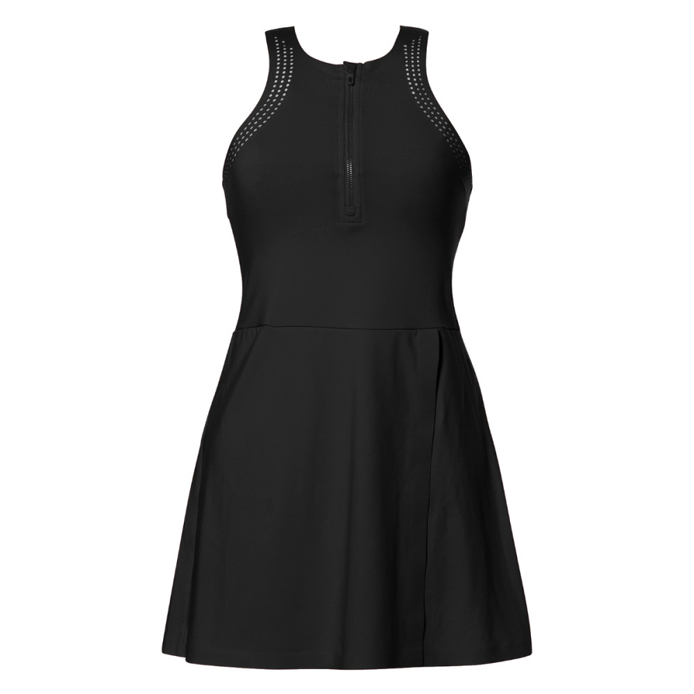 Zip na hrudníku umožňuje snadné oblékání a přizpůsobení podle vašich potřeb, zatímco všitá podprsenka poskytuje potřebnou oporu a pohodlí. Perforovaný materiál dodává šatům jedinečný styl a zároveň zlepšuje cirkulaci vzduchu.
