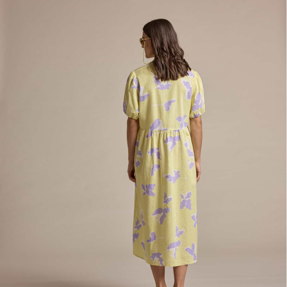 Splývavá silueta s jemně spuštěnými rameny a širokými rukávy zaručuje volnost pohybu a zároveň vzdušnou eleganci. Design šatů je jemný a nenásilný, takže se hodí do letních dnů na zahradu, ale i do města.