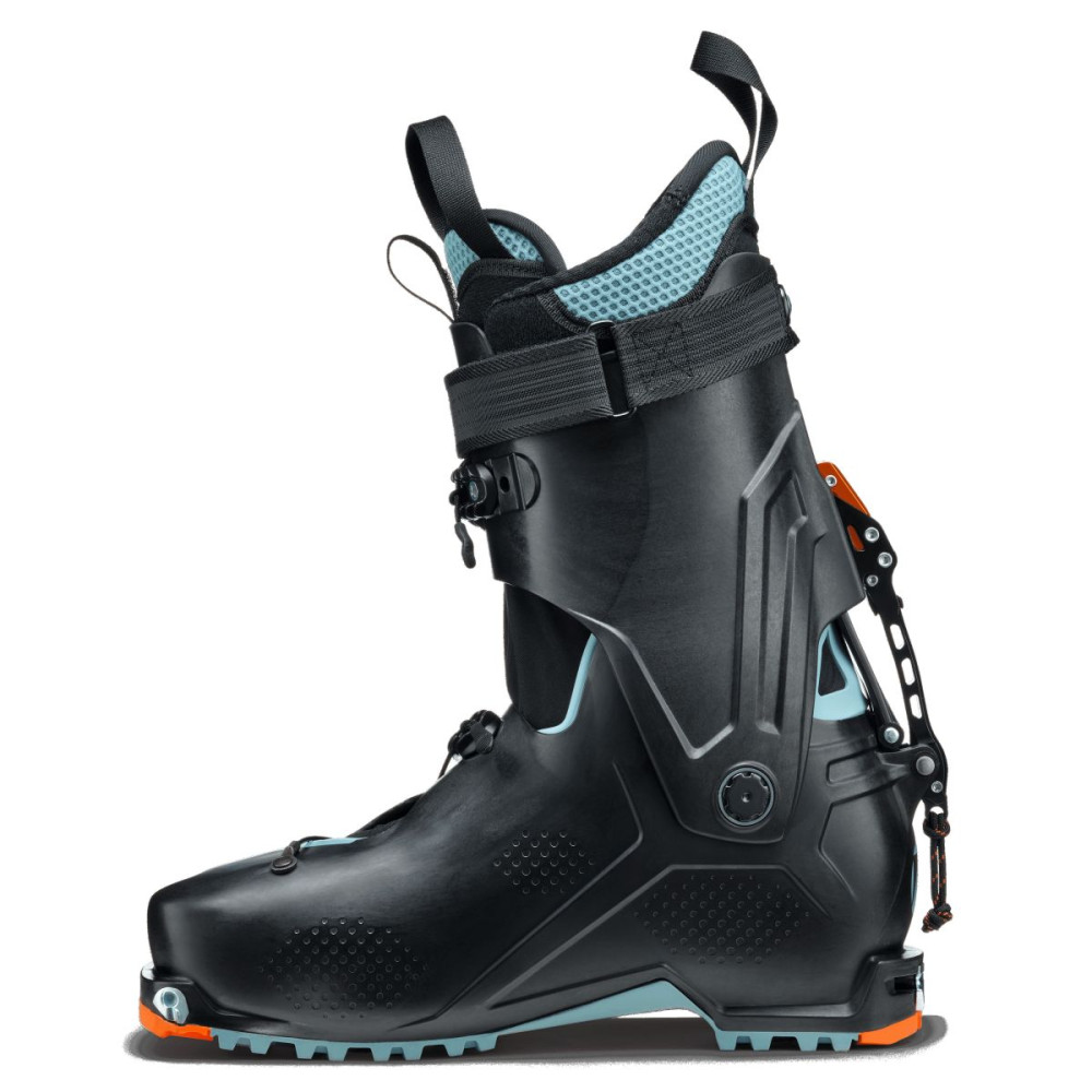 Jestli vás něco tíží, nechte to v údolí. Starosti, deadliny, zbytečně těžké vybavení. Tyto dámské lyžáky tam ale určitě nenecháte. To spíš zapomenete, že je máte na nohou. Tecnica Zero G Peak W srazily svou hmotnost pod 1000 gramů, těsně obepínají nohy a komín má rozsah pohybu 75 stupňů. To je vrchol pohodlí. A pak dotáhnete dvě přezky a pořádně se opřete do jazyků – to je zase vrchol tuhosti a kontroly v každém oblouku.