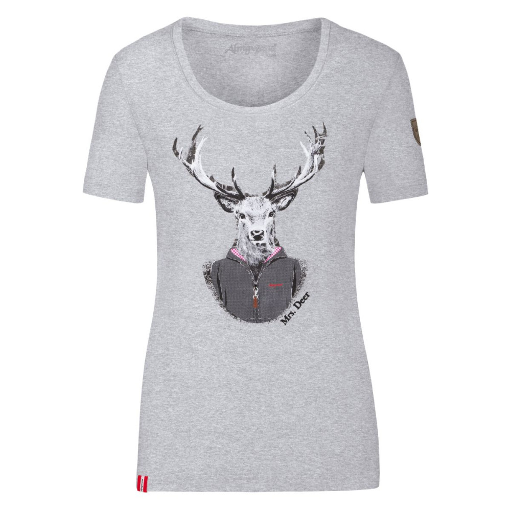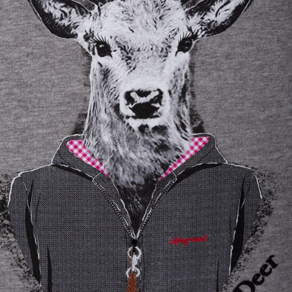 V dámském tričku Almgwand si získáte pozornost. Má totiž proparcovaný potisk s jelenem, který je oblečený v klasické mikině od stejné značky. Krátký rukáv se ideálně hodí na teplejší dny. Obsah elastanu ve složení se postará o to, aby příjemně sedělo na postavě.