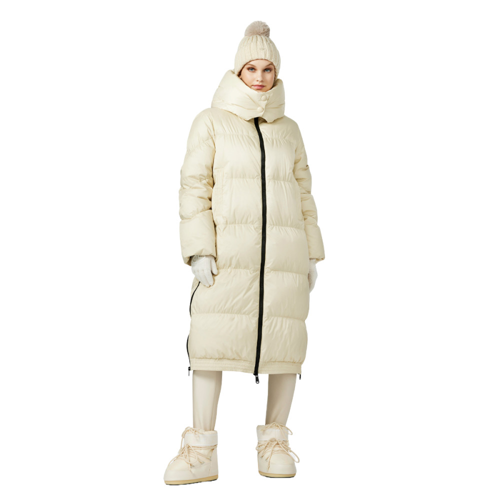 Dámský kabát, se kterým zazáříte za každé situace. Kabát je zateplený prémiovým peřím a spolu s velkým límcem, který se dá zapnout pomocí druků, poskytuje vysoký tepelný komfort. Vodní sloupec zajistí, že vás nezaskočí ani nepříznivé počasí.
