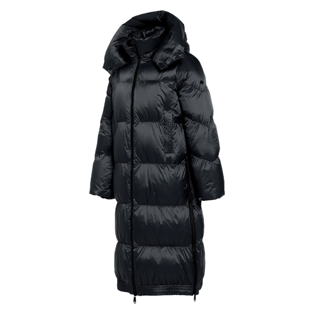 Dámský kabát, se kterým zazáříte za každé situace. Kabát je zateplený prémiovým peřím a spolu s velkým límcem, který se dá zapnout pomocí druků, poskytuje vysoký tepelný komfort. Vodní sloupec zajistí, že vás nezaskočí ani nepříznivé počasí.