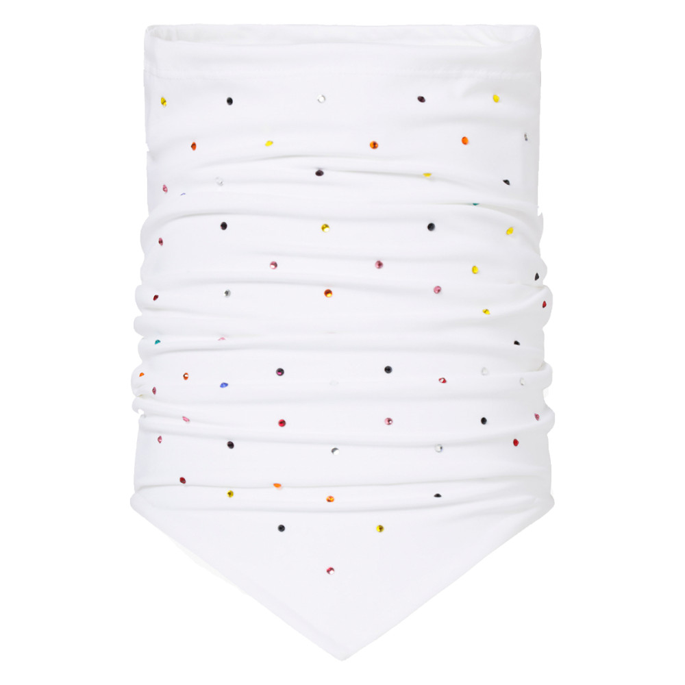 Nákrčník je ozdoben předním panelem s mnohobarevnými strass kamínky, které dodávají lesk a jedinečný vzhled. Na bočním švu je umístěn tkaný štítek značky.