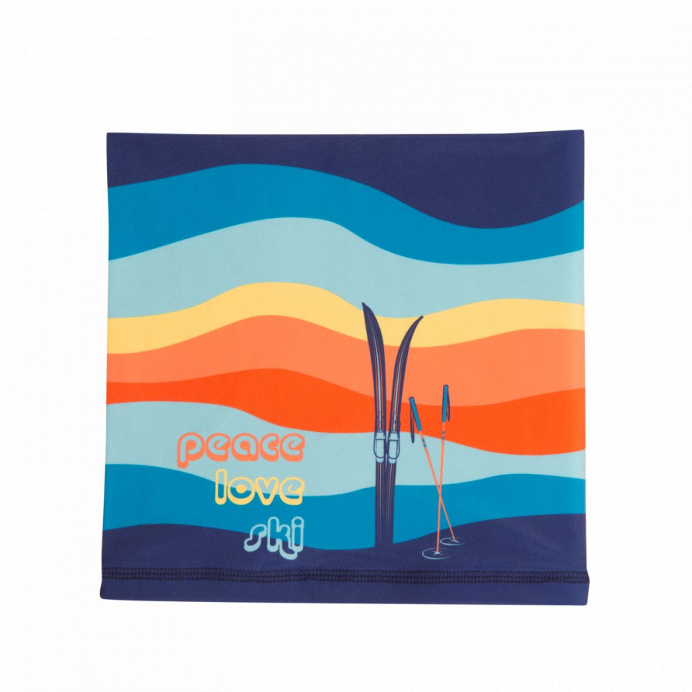 Dámský nákrčník z pevnějšího materiálu, který poskytuje perfektní tepelný komfort. Duhový vzor je ozvláštněný motivem lyží a holí.