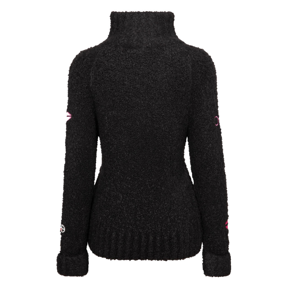 Dámský svetr Pérnellesi oblečete až bude venku opravdu chladno. Jemný materiál s příměsí merino vlny je hřejivý, pohodlný a měkký na dotek. Je doplněn vysokým stojáčkem s polopropínacím zipem, díky kterému vám nebude zima na krk a můžete si jej přizpůsobit podle potřeby. Přiléhavý střih elegantně zdůrazní vaši siluetu a jednoduchý design umožní snadné kombinování s dalším oblečením.