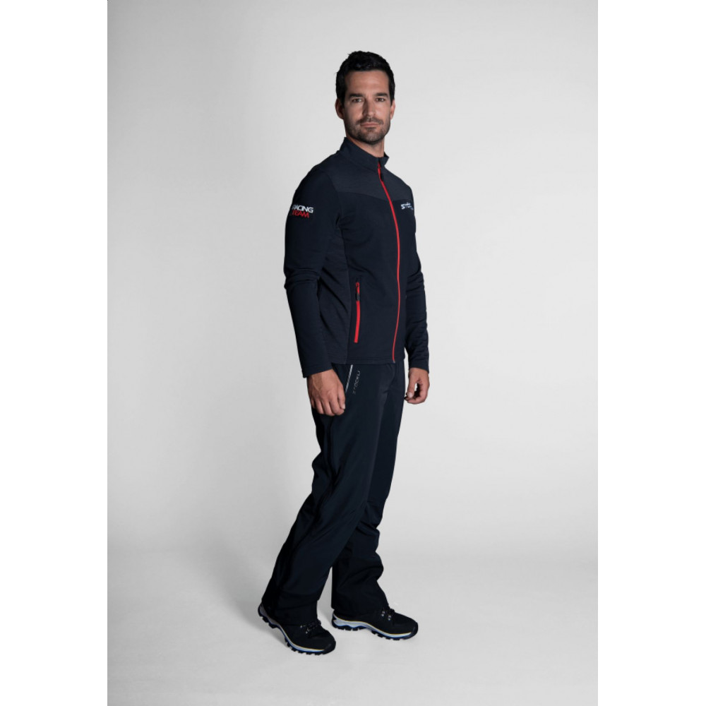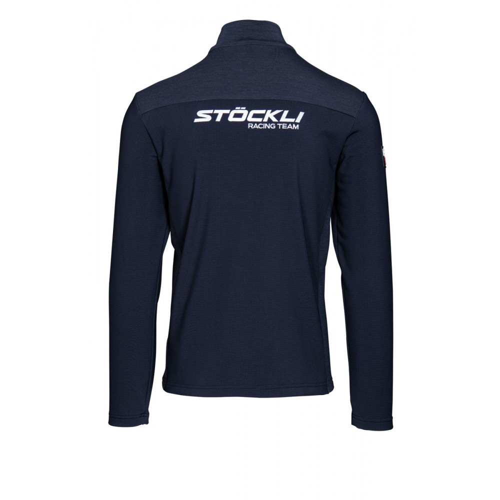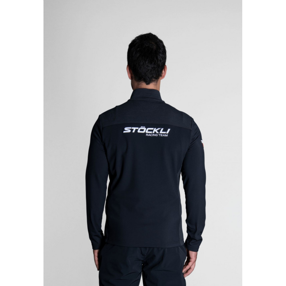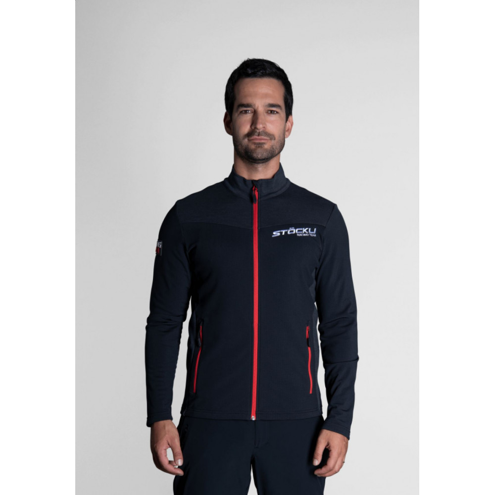 Pánská mikina, která dokonale doladí Váš WRT komplet. Černá mikina je doplněná šedou melangovou látkou v oblasti ramen a pod rukávy. Ani u mikin nechybí červené detaily jako je karbonový odznak na rukávu a a výšivky Stöckli “racing team” na prsou a na zádech. Mikina udržuje správnou tepelnou regulaci, má prodyšný a strečový materiál a skvěle se hodí na všechny outdoorové aktivity.