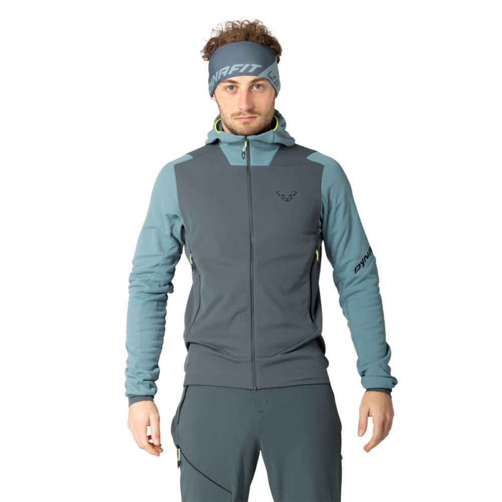 Materiál rychle schne a odvádí vlhkost od těla, takže zůstáváte v suchu i během fyzicky náročných pasáží. Přiléhavá kapuce chrání před větrem, zatímco elastické manžety a spodní lem udržují mikinu pevně na místě bez omezování pohybu. Díky čtyřsměrné elasticitě se mikina přizpůsobí každému pohybu a neomezuje při lezení, výstupech ani sjezdech.