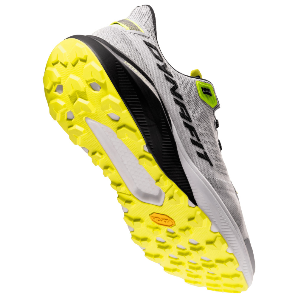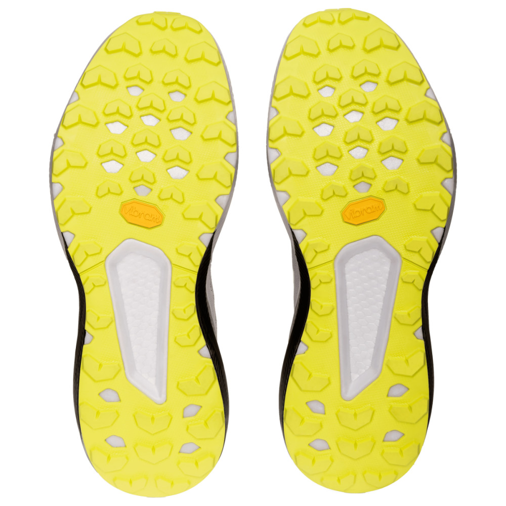 Podešev Vibram® XS Trek nabízí spolehlivou přilnavost a vysokou odolnost i na tvrdých nebo proměnlivých površích. Lehký jacquard svršek s podílem 32,2 % recyklovaných materiálů poskytuje výbornou prodyšnost a komfort při delších bězích. Ploché tkaničky pomáhají rovnoměrně rozložit tlak a zajistit stabilní fixaci chodidla.