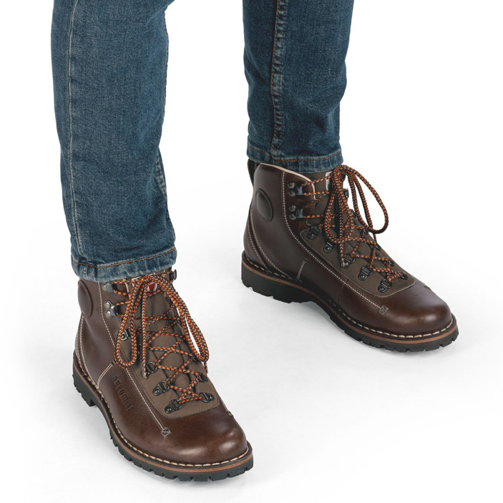 Dolomite 54 La Classica představuje spojení tradiční horolezecké obuvi s moderním zpracováním, které odpovídá dnešním nárokům na styl, komfort a odolnost. Tato ikonická bota vychází z dědictví alpského italského obuvnictví a je vytvořena za použití „Ideálního“ ručního řemeslného zpracování, což je technika, která zajišťuje mimořádnou kvalitu a dlouhou životnost.