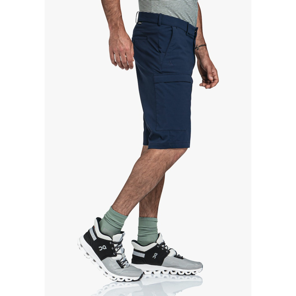 Pánské kraťasy Scöffel Matola pro každodenní nošení z vysoce pohodlného materiálu Supplex®. Materiál Supplex® je vysoce odolný, rychleschnoucí, prodyšný a také nabízí příjemný měkký pocit na kůži. Kraťasy mají kromě obvyklých kapes také jednu na stehně a jednu skrytou kapsu na zip. To znamená, že v každodenním životě vždy najdete to správné místo pro svůj mobilní telefon, peněženku apod.