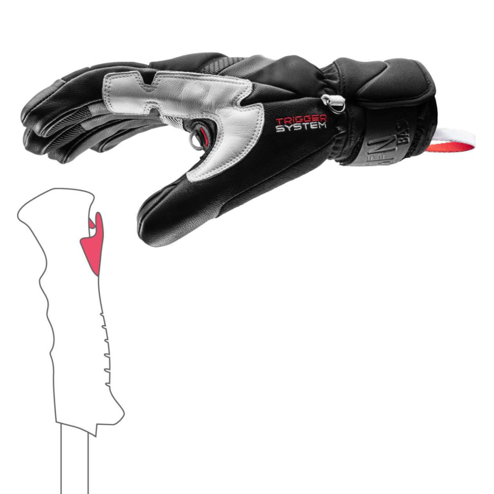 Velký komfort vám dopřeje technologie Trigger System, která umožňuje rychlé nacvaknutí a vycvaknutí k holi. Bezpečnostní pojistka vás ochrání před poraněním při pádu. Všechna poutka a rukavice Trigger jsou kompatibilní se všemi holemi Trigger.