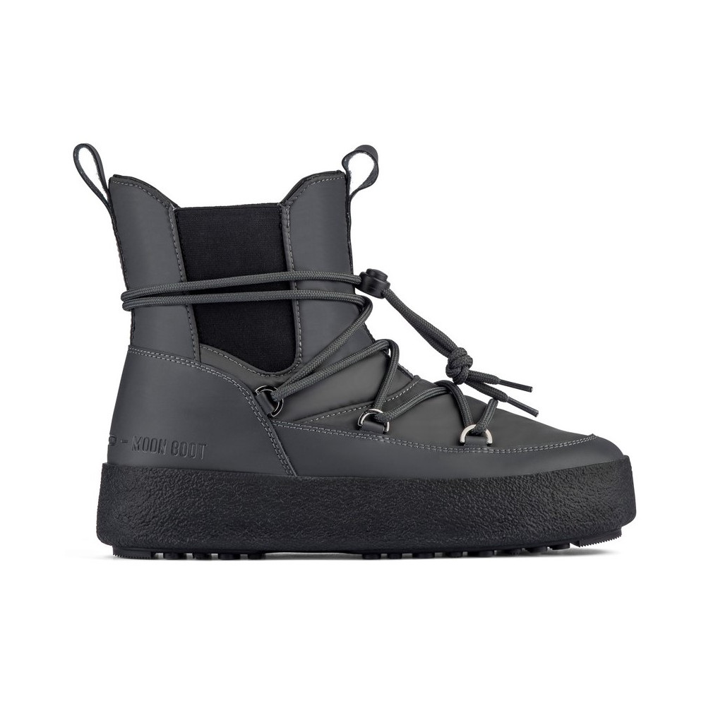 Pánské zimní boty Moon Boot MTRACK TUBE RUBBER jsou verzí sněhulí, přepracovanou do podoby sportovní obuvi, které Vás vystřelí až na měsíc! Díky svému originálnímu jednoduchému vzhledu se budou hodit nejen na hory, ale také do ulic města. Pásek, který se táhne po obvodě boty, je stejně jako spodek boty vyhotoven z umělé kůže. Na lemu kolem boty je vyryto logo značky. Nepropouští vodu a chrání před prochlazením zdola.