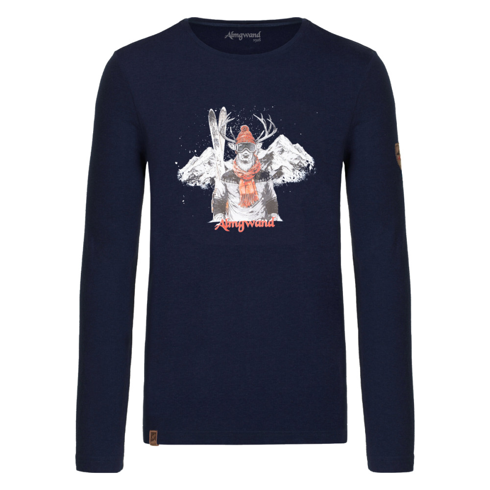 Pánské tričko Almgwand ABLEITENALM je navrženo tak, aby okamžitě upoutalo pozornost. Na hrudníku se nachází motiv lyžaře se zasněženými hory v pozadí což inspiruje k zimnímu dobrodružství.