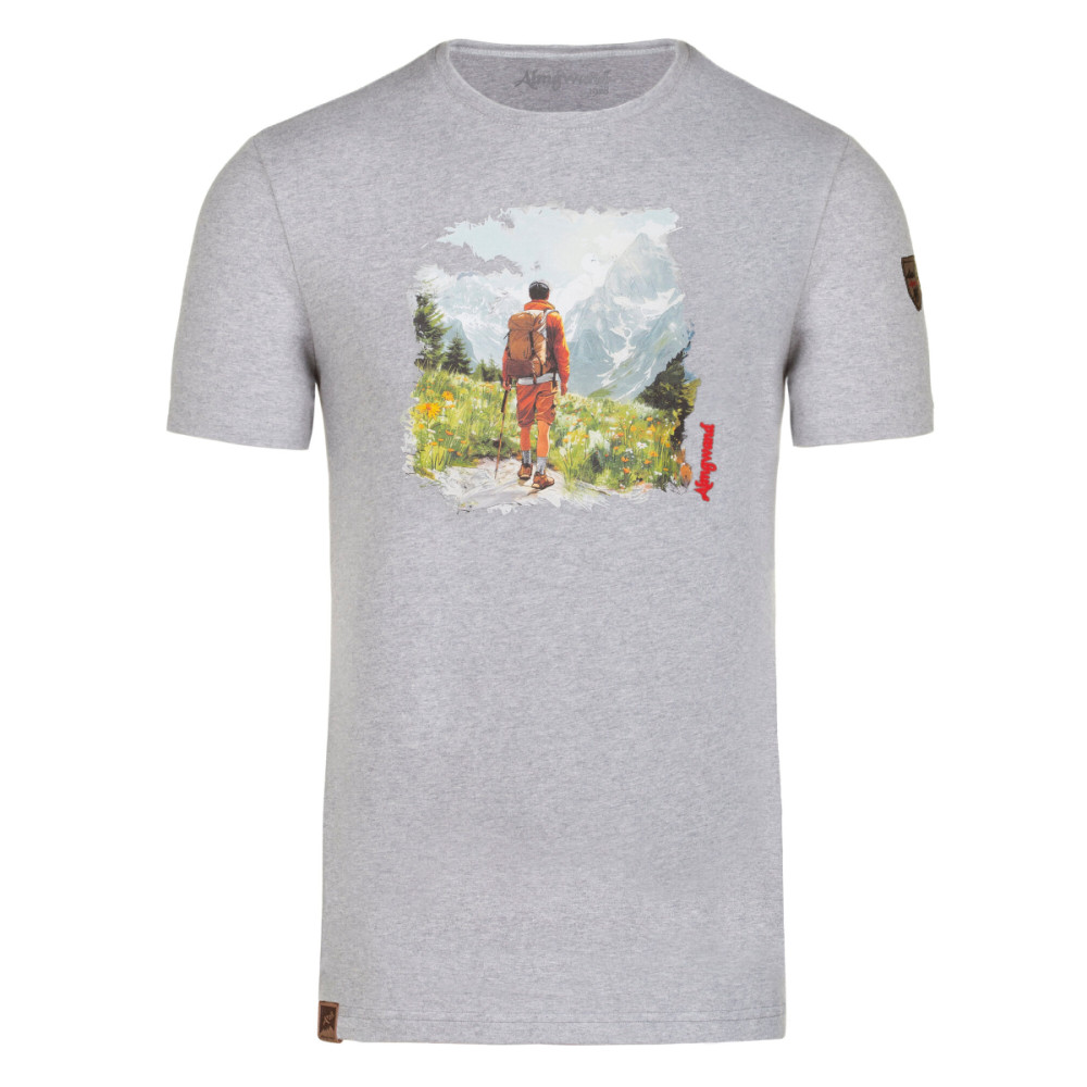 Pánské tričko Almgwand Ochsenkaralm zaujme barevným motivem turisty na horské louce s horami v pozadí. Typické logo značky je provedeno v 3D potisku. Jednoduchý, sportovní střih poskytuje příjemnou volnost pohybu a měkký materiál zajišťuje pohodlné nošení. Má upravu proti žmolkování a udrží svůj tvar i po opakovaném praní.