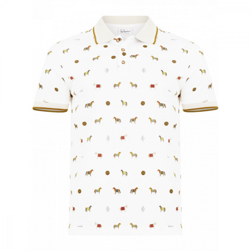Pánské polo tričko, klasického střihu se zapínáním na knoflíky u krku. Zajisté vás, ale upoutá nevšední motiv koní. Tričko je v béžové barvě a originální motiv koní se střídá s nápisem Luis Trenker a s jeho logem. Límeček a rukávy jsou ozvláštněné žebrovaným béžovo-hnědým materiálem. Díky 100% bavlněnému materiálu je tričko velmi příjemné.