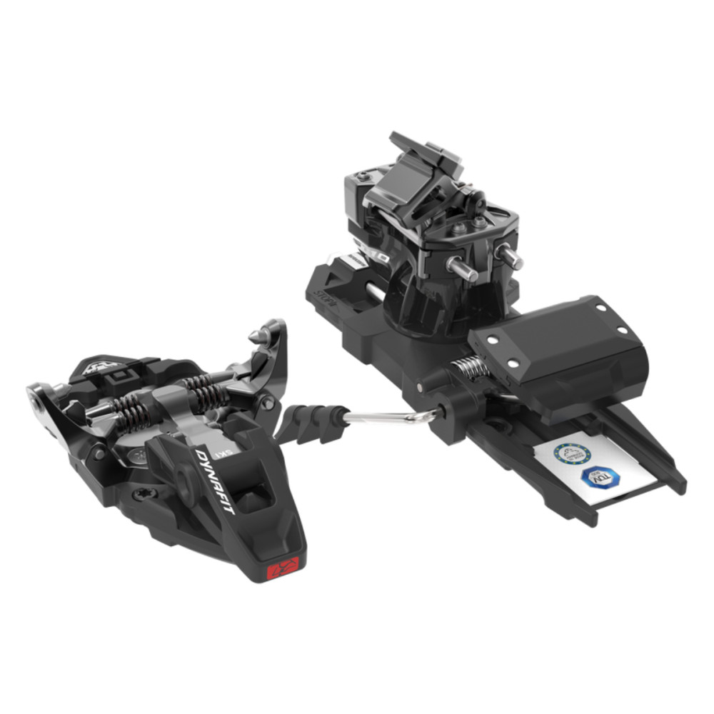 Patentovaná otočná špička DYNAFIT vyrovnává nárazy působící na lyži a vázání během dynamického sjezdu. Díky tomu je funkce vypínání spolehlivější a efektivně zabraňuje nežádoucímu předčasnému vypnutí. Přední tlak 10 mm zajišťuje konstantní vypínací hodnotu i při prohnutí lyží.