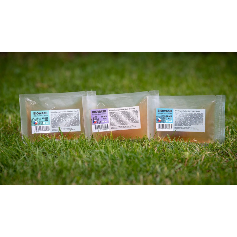 Ekologický přírodní prací prostředek na vlněný textil a funkční sportovní oblečení z merino vlny. Prací prostředek je vyrobený ze za studena lisovaných výtažků z mýdlových ořechů. Díky přídavku lanolínu udržuje vlákna vlny pružná i při opakovaném praní. Lanolín je látka, která přirozeně pečuje o srst ovcí. Levandulová silice příjemně vlnu ovoní a zároveň ji ochrání proti molům. Obsah balení vystačí na 1 prací cyklus.