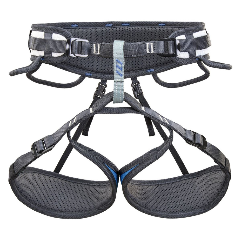 Díky čtyřem nastavovacím přezkám lze snadno přizpůsobit různým velikostem a typům postav, což zajišťuje pohodlí a bezpečnost při nošení. Ergonomicky tvarovaný bederní pás a nohavičky poskytují vynikající podporu a komfort bez omezení pohybu. Čtyři velké materiálové poutka a další menší poutka na vybavení jsou strategicky umístěna pro snadný přístup a efektivní organizaci lezeckého vybavení.
